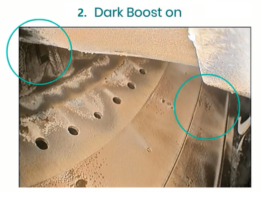 2. 專用圖像改觀套件對提升 POD 提供了極大的幫助。檢測環(huán)境紛繁復雜,如何讓每一張檢測圖像、圖像中的每一個角落都能清晰地呈現(xiàn)檢測所需的真相?韋林孔探儀的圖像改觀套件帶來針對性的處理功能:自適應降噪、暗部增強、失真校正、高動態(tài)范圍、白平衡、色彩飽和度......眾多工具為您打造清晰畫面。如果您熟悉攝影,一定對其中的一些概念不陌生,這里僅以暗部增強(Dark Boost)為代表,了解這些圖像處理功能在孔探檢測中的應用及意義。